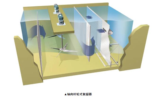 但缺點更突出:第一,葉輪式絮凝器用于產生充分的混合,并盡可能降低湍流。然而,與其他具有較高水流速度梯度的區域相比,更容易產生死角,而且發生水流旋轉。第二,葉輪式絮凝器產生非常高的葉尖速度,容易使絮凝物掉下來。一旦破碎,礬花就不會再聚集。第三,葉輪式絮凝器的每個葉輪都有一個齒輪箱,需要進行日常維護和考慮配電系統。每個齒輪箱必須支撐整個裝置的全部重量和扭矩輸出,而無需外部推力軸承。因此絮凝設施的預期壽命可能會降低。