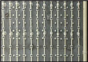 單孔膜空氣擴散器按一定間隔安裝在空氣管道上,空氣管道又被固定在承托濾板上,單孔膜空氣擴散器一般都設計安裝在濾料承托層里,距承托板約0. 1~0. 15m,使空氣通過擴散器并流過濾料層時可達到30%以上的氧利用率。該種擴散器的另一個特點是不容易堵塞,即使堵塞也可用水進行沖洗。 |