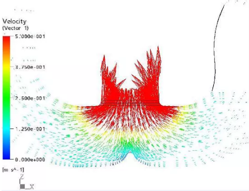 圖5筒節底端CFD速率矢量圖片 2.反清洗設備 針對一體化預制泵站中普遍的固態殘渣以及沉積難題的解決,以上技術早已在現實制造中證實了其實效性,獲得了使用者的認同。可是針對一體化預制泵站內部的另一種環境污染:油漬及飄浮廢棄物,依據用戶滿意度,以上對策還不可以合理處理。針對中國的一體化預制泵站的提升,還必須堅持不懈漂浮的努力。 當一體化預制泵站中的水泵運作啟動時,根據設置的管理程序開啟旁支管路上的電動調節閥,小口徑水主管路內的一部分工作壓力水從旁支管路穿過,因為旁支管路管經較小,促使排出的壓水變成快速流水,快速流水指向一體化預制泵站井室內部非常容易沉積的地點開展沖洗,使一體化預制泵站內堆積的殘渣在水再次沖擊性下伴隨著水泵的運作而被運輸至一體化預制泵站外排出來。依據一體化預制泵站實際運作工作狀況,可以在自動控制系統中智能化地調整電動調節閥的開閉及其打開間距。