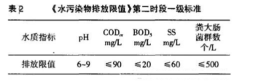污水處理后要求達到廣東省地方標準《水污染物排放限值》(DB 44/26—2001)第二時段一級標準(見表2)。