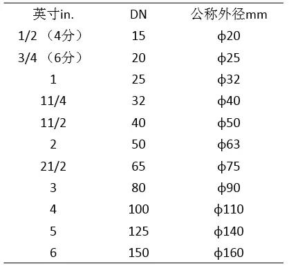 公稱直徑可用公制mm表示,也可用英制in表示。管路附件也用公稱直徑表示,意義同有縫管。它與英制單位的對應(yīng)關(guān)系如下: