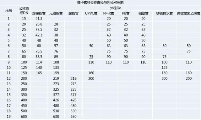 當(dāng)設(shè)計均用公稱直徑 DN 表示管徑時,應(yīng)有公稱直徑 DN 與相應(yīng)產(chǎn)品規(guī) 格對照表。
