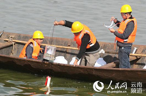 11月10日,工作人員正在滇池草海水域進行樣點取水 黨中央、國務院和云南省委、省政府高度重視滇池治理工作,連續4個“五年規劃”將滇池納入國家重點流域治理規劃和云南省九大高原湖泊治理之首。2015年初,習主席在云南考察時提出“爭當全國生態文明建設排頭兵”的殷切希望,這是習主席對云南發展的重要定位,也是國家賦予云南的重要使命。滇池治理,無疑是云南建設生態文明排頭兵過程中無法回避的課題。 多年來,昆明始終把滇池保護治理作為生態文明建設的首要任務和“一把手”工程,舉全市之力全面實施 “環湖截污和交通、外流域引水及節水、入湖河道整治、農業農村面源治理、生態修復與建設、生態清淤”六大治理工程。金線鲃重現水體,海菜花綻放湖畔,曾在我國絕跡的彩鹮重現濕地......隨著滇池治理力度的不斷加大,滇池水質和生態環境逐漸變好。