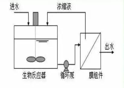 生物反應器中的混合液經循環泵增壓后打至膜組件的過濾端,在壓力作用下混合液中的液體透過膜,成為系統處理水;固形物、大分子物質等則被膜截留,隨濃縮液回流到生物反應器內。 一體式 把膜組件置于生物反應器內部。進水進入膜--生物反應器,其中的大部分污染物被混合液中的活性污泥去除,再在外壓作用下由膜過濾出水。