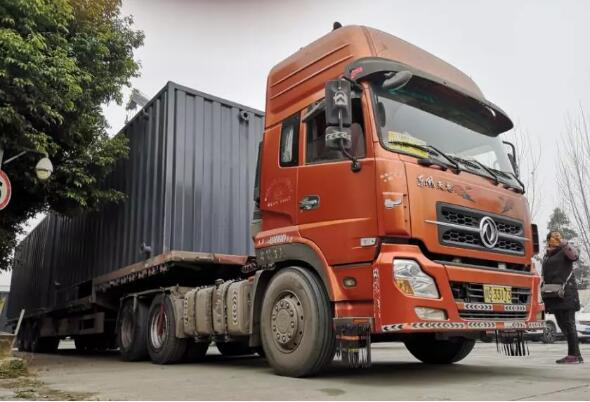 圖為:裝載設備的車輛駛出優普廠區